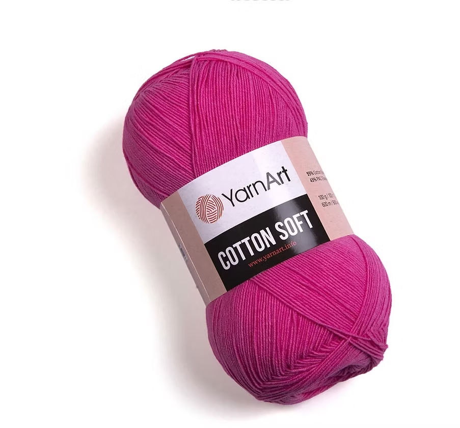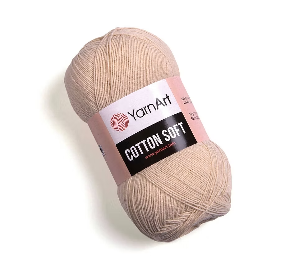 El hilado Cotton Soft de YarnArt es 55% algodón y 45% acrílico, liviano y perfecto para tejer con comodidad 😍 Su textura natural y fresca lo hace ideal para proyectos que van directo sobre la piel, especialmente en climas más cálidos.
